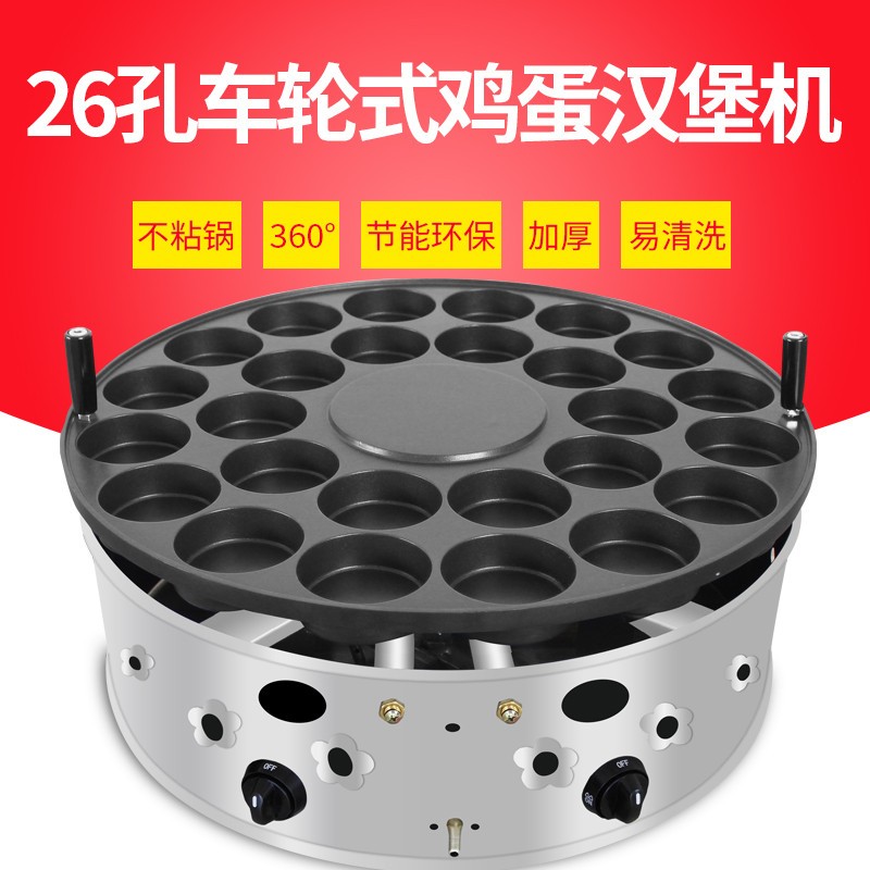 • 雞蛋漢堡機擺攤商用26孔不粘鍋車輪餅機紅豆餅機22孔燃氣蛋肉堡爐